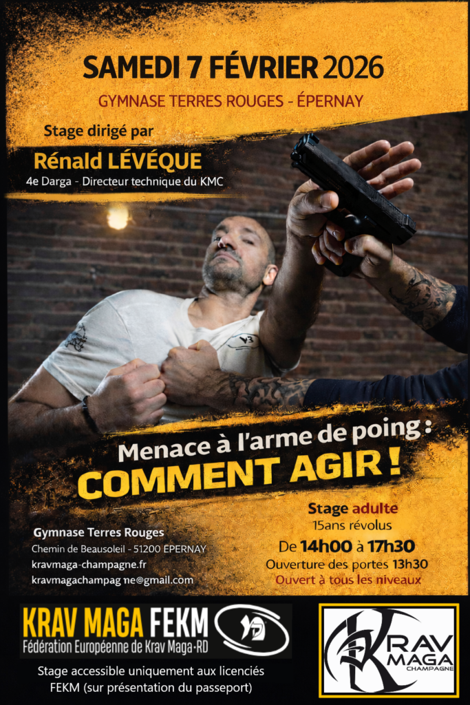 Au Krav Maga Champagne, nous proposons des cours de self-défense accessibles à tous : adultes, enfants, et une section dédiée aux femmes, dans une ambiance bienveillante et sécurisée. Notre club associatif est affilié à la Fédération Européenne de Krav Maga (FEKM) et applique ses standards de qualité, ses programmes techniques rigoureux, et ses valeurs de respect et de maîtrise de soi.